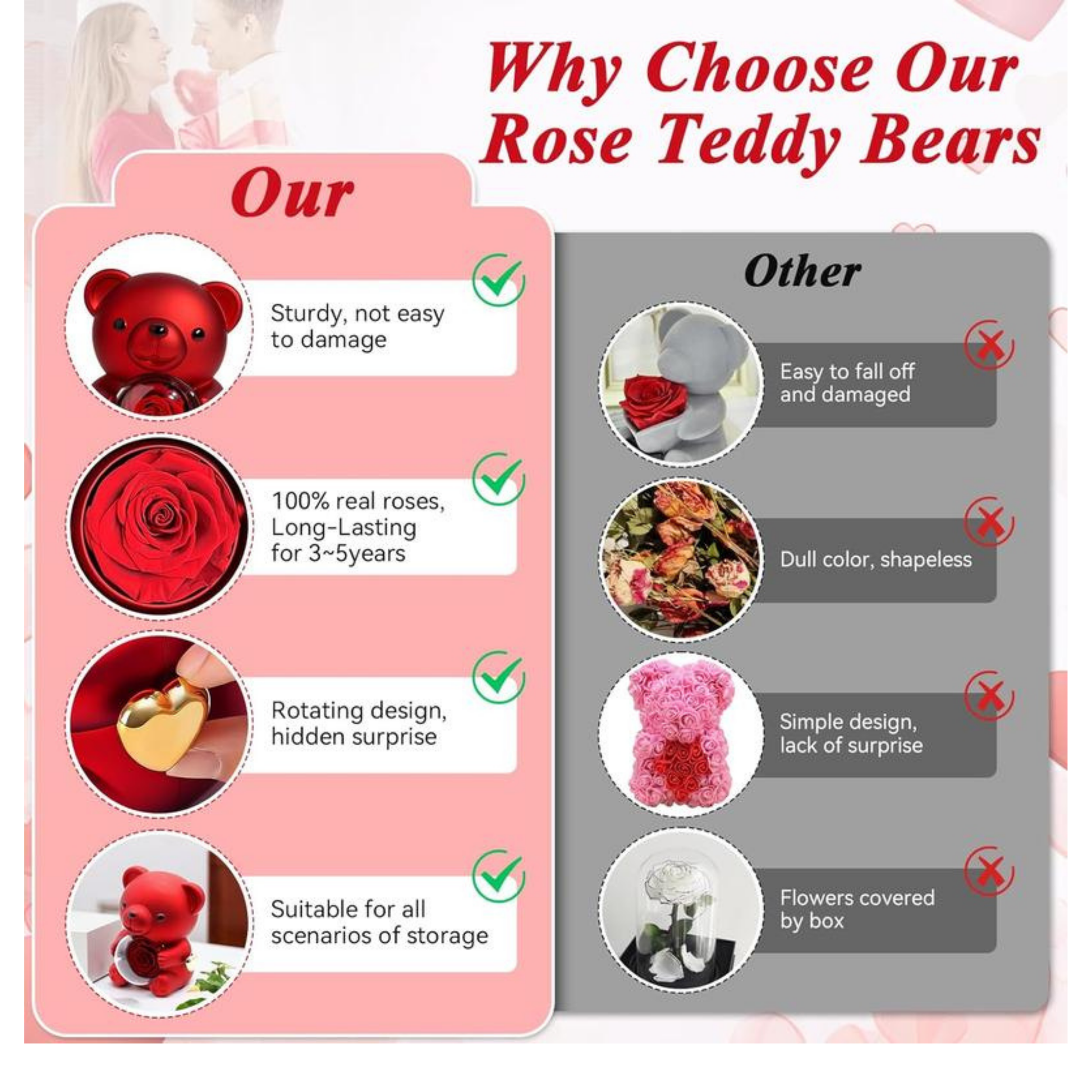 with teddy rose bear you get, a beautiful flower, and a beautiful necklace.